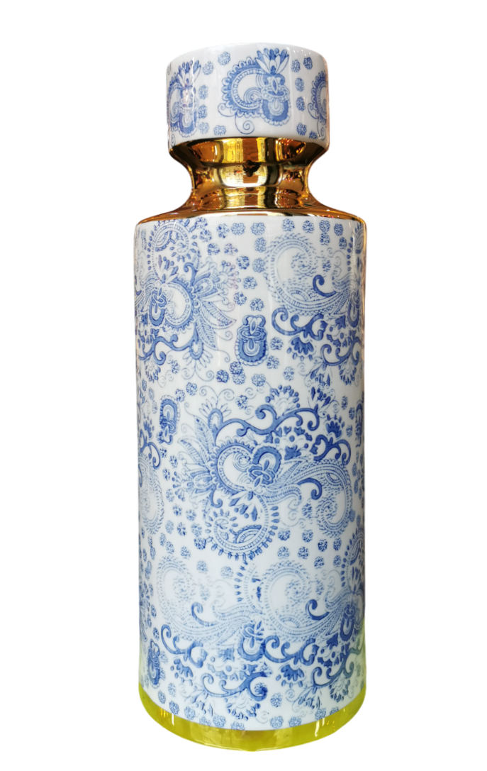 Chinesische Vase Blau Weiß Gold Handgefertigt D14xH26cm