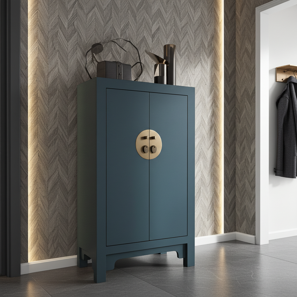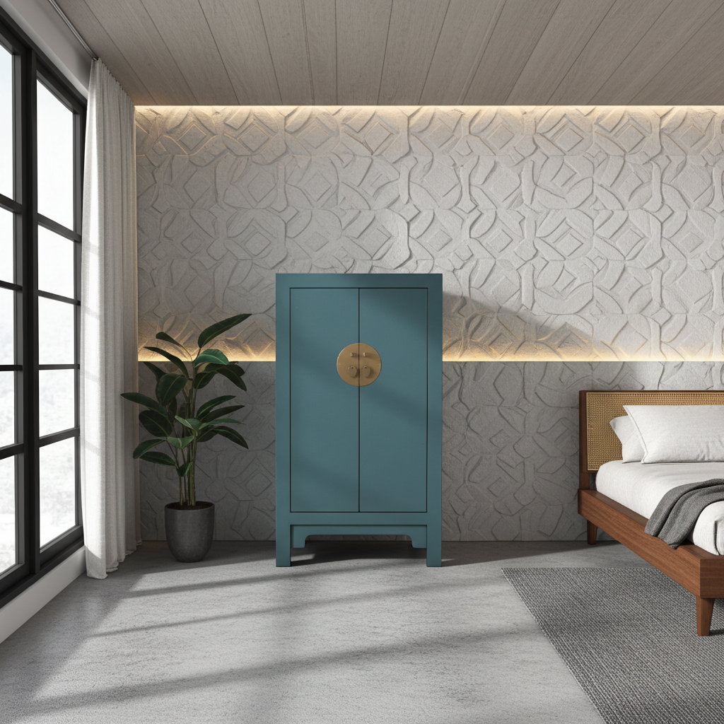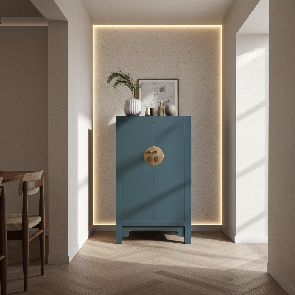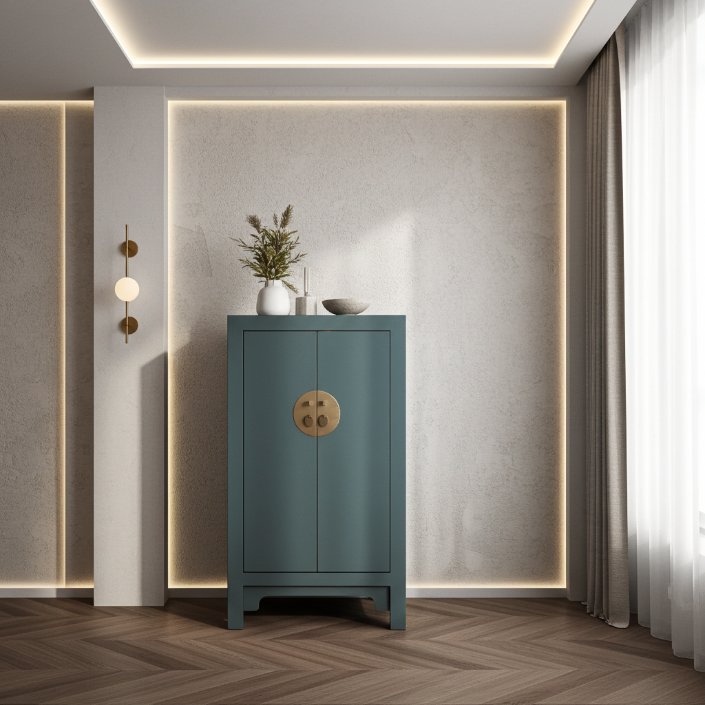 Chinesischer Schrank Arctic Blau Grau - Orientique Kollektion B70xT40xH120cm