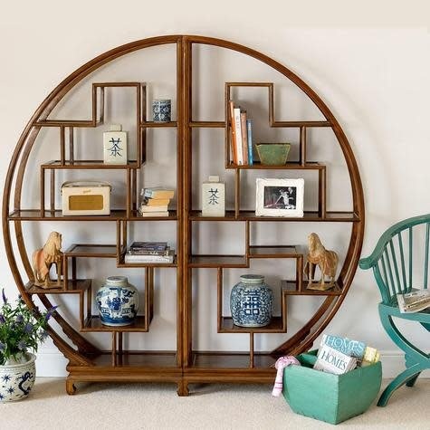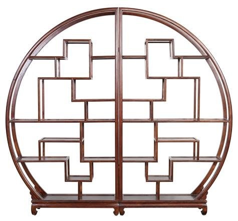 Chinesisches Bücherregal Runder offener Schrank Braun B192xH176cm