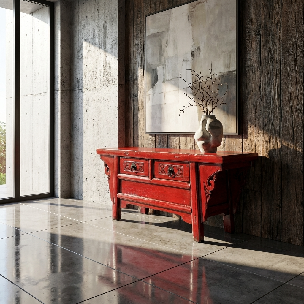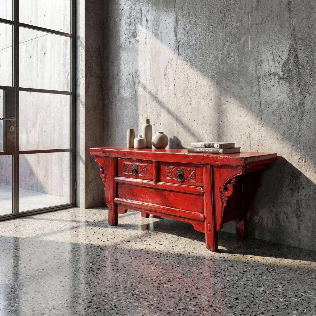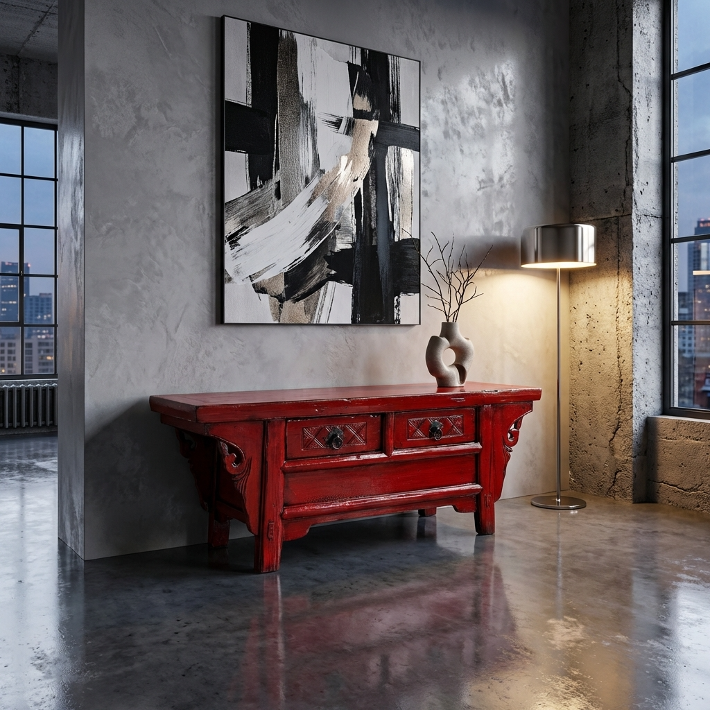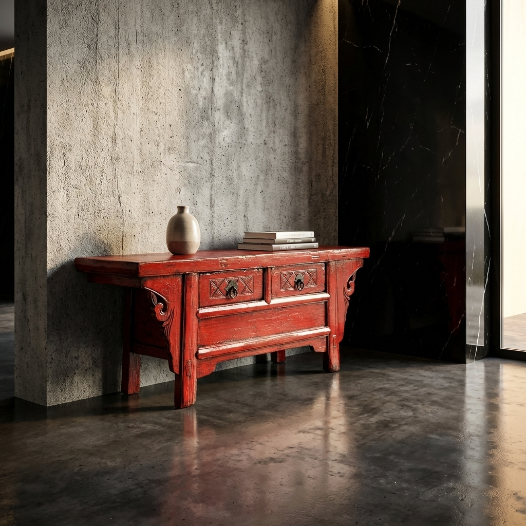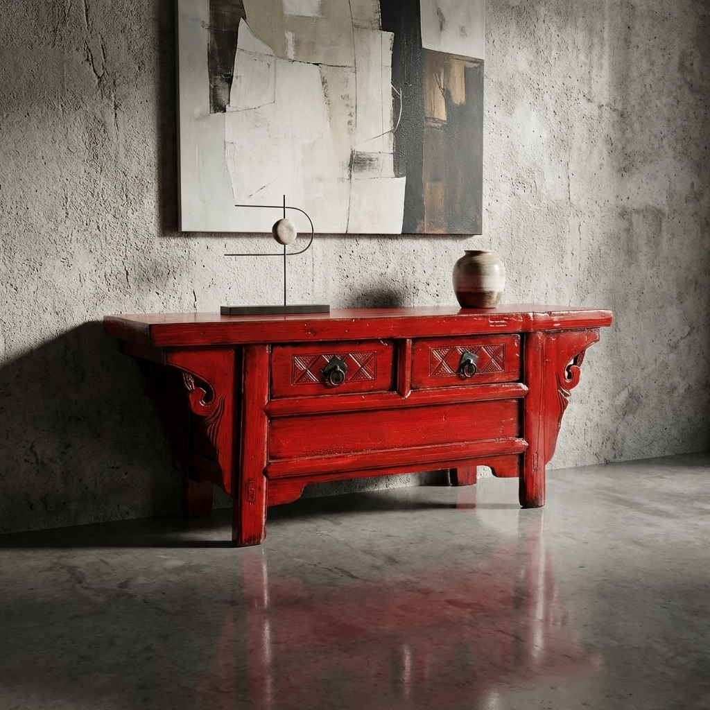 Antique Chinese Cabinet Red High Gloss W107xD40xH43cm