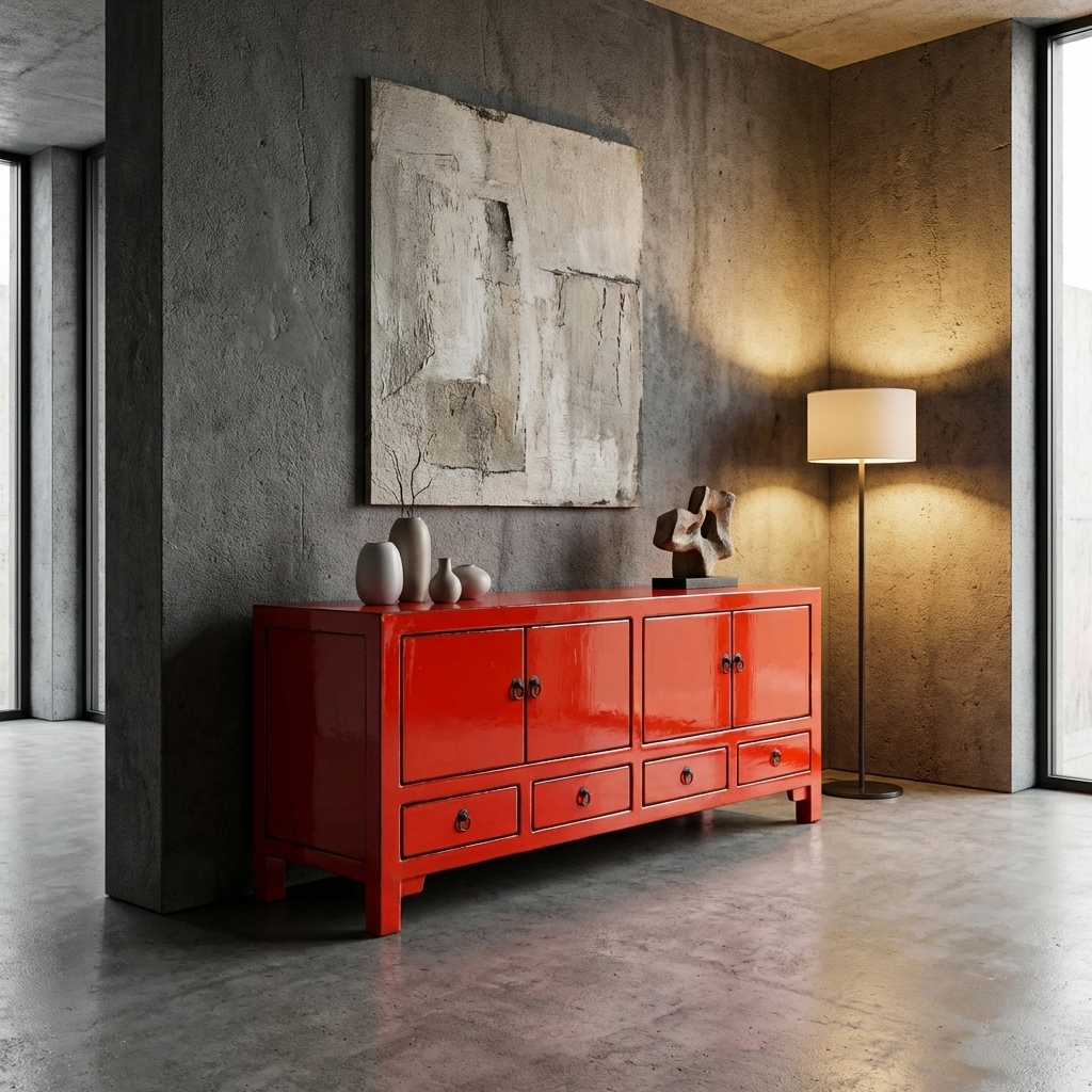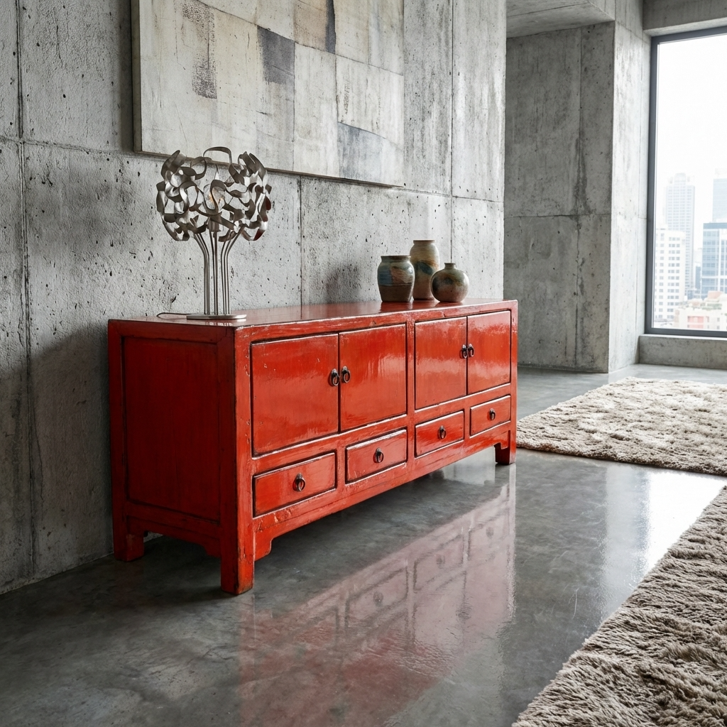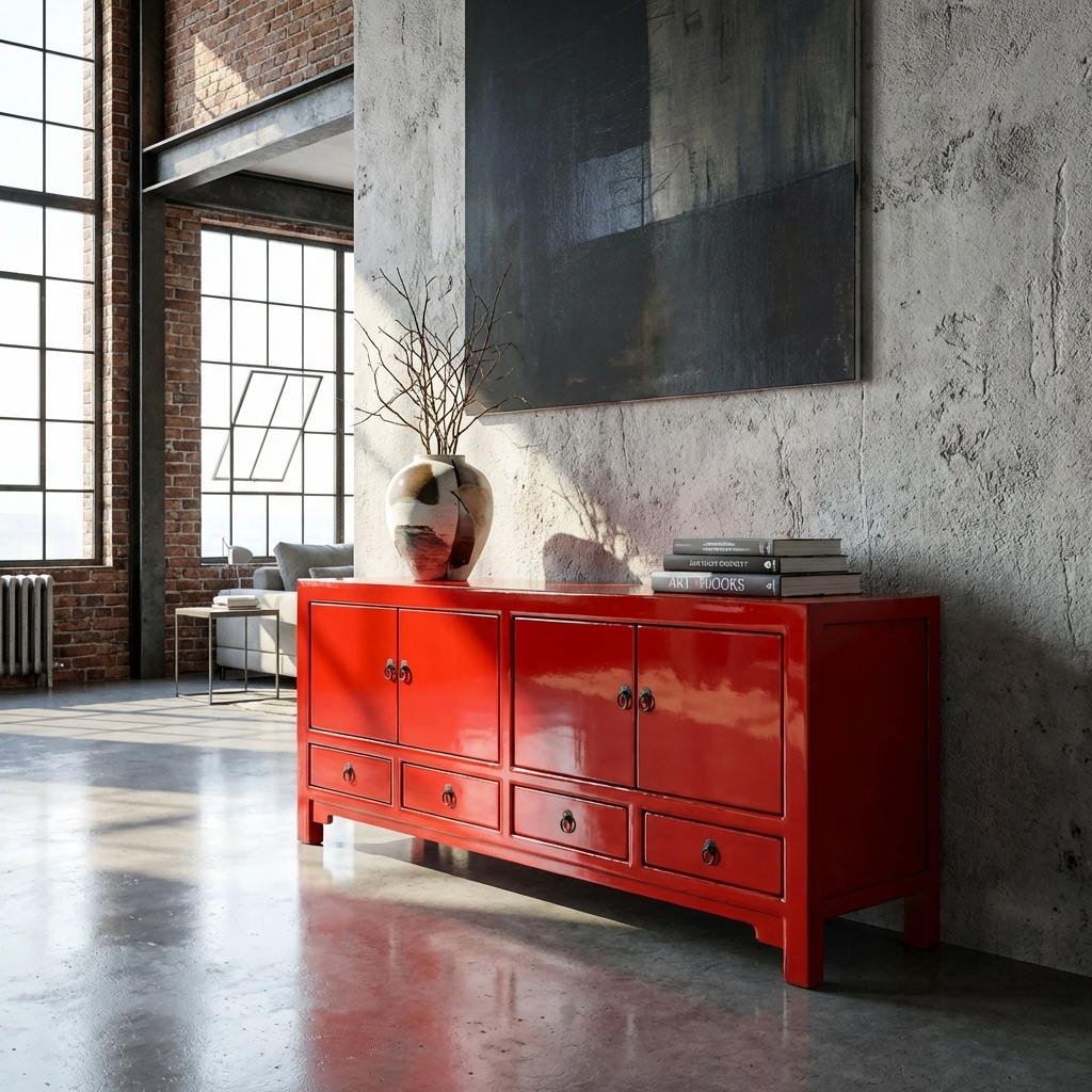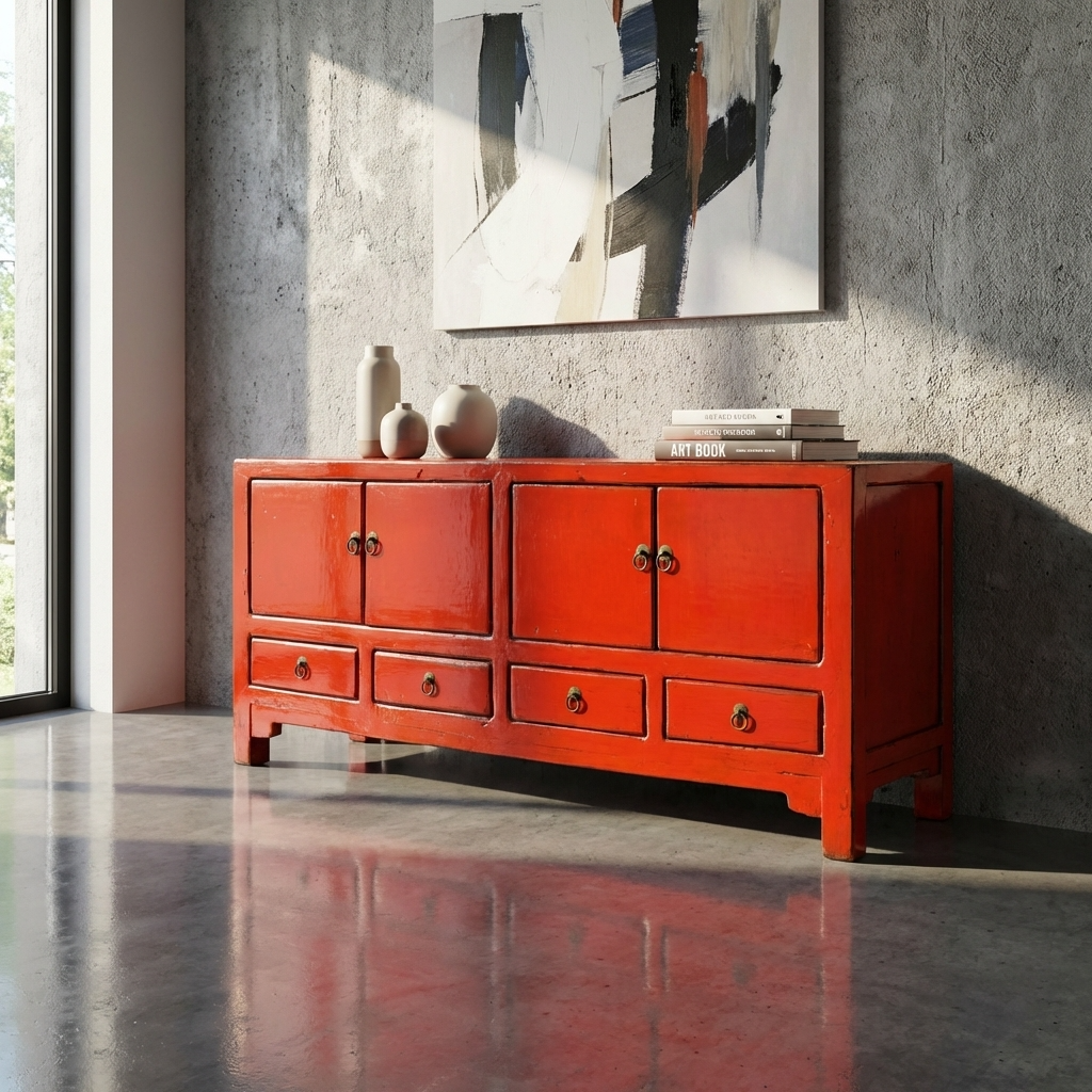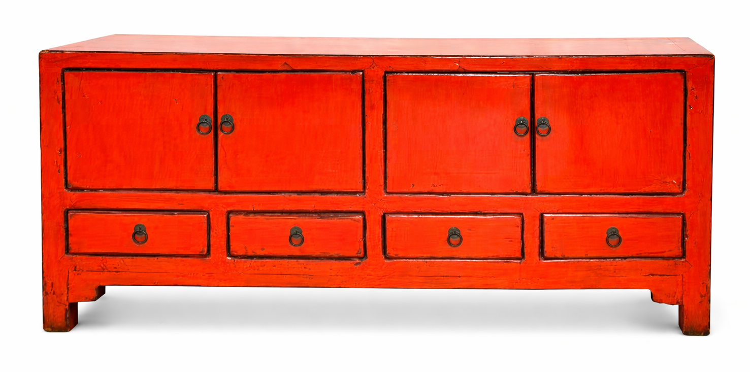 Antique Chinese TV Cabinet Red High Gloss W151xD39xH54cm
