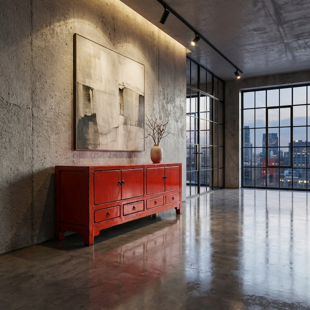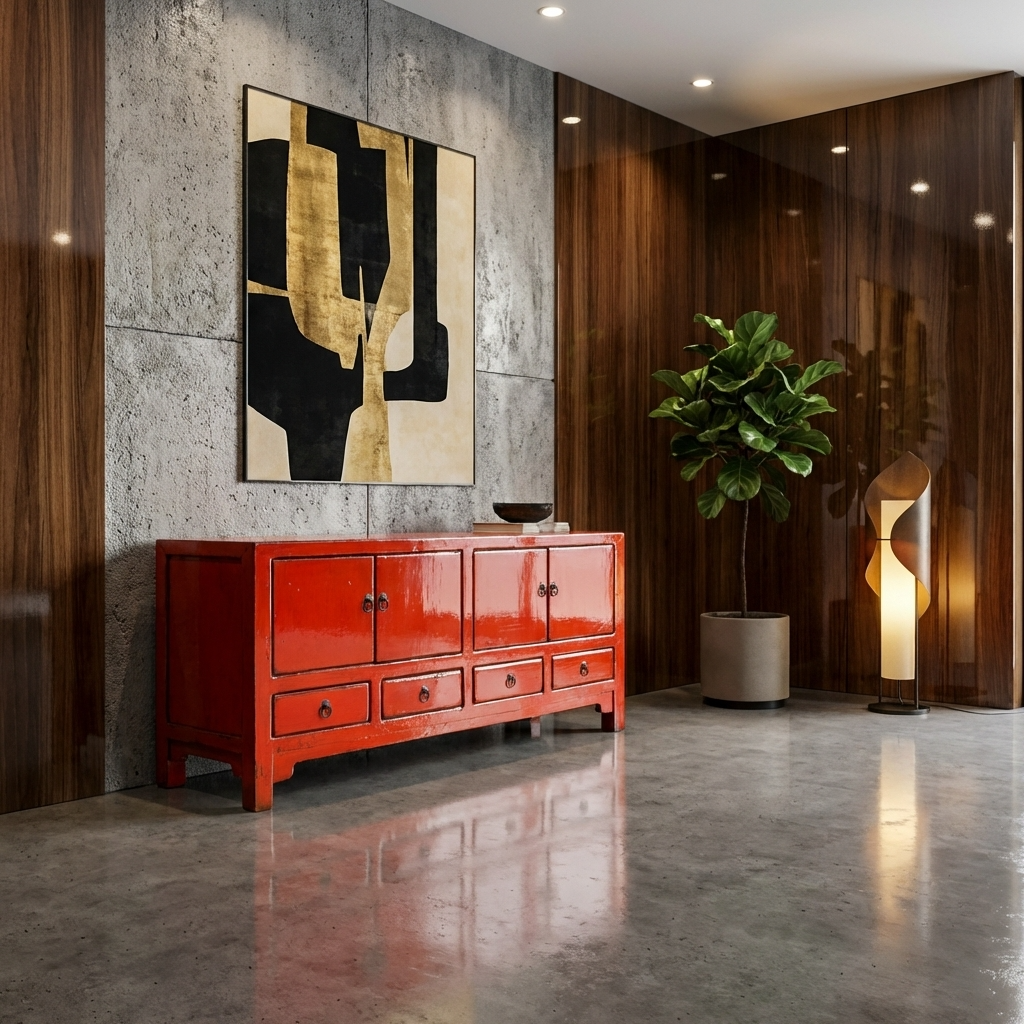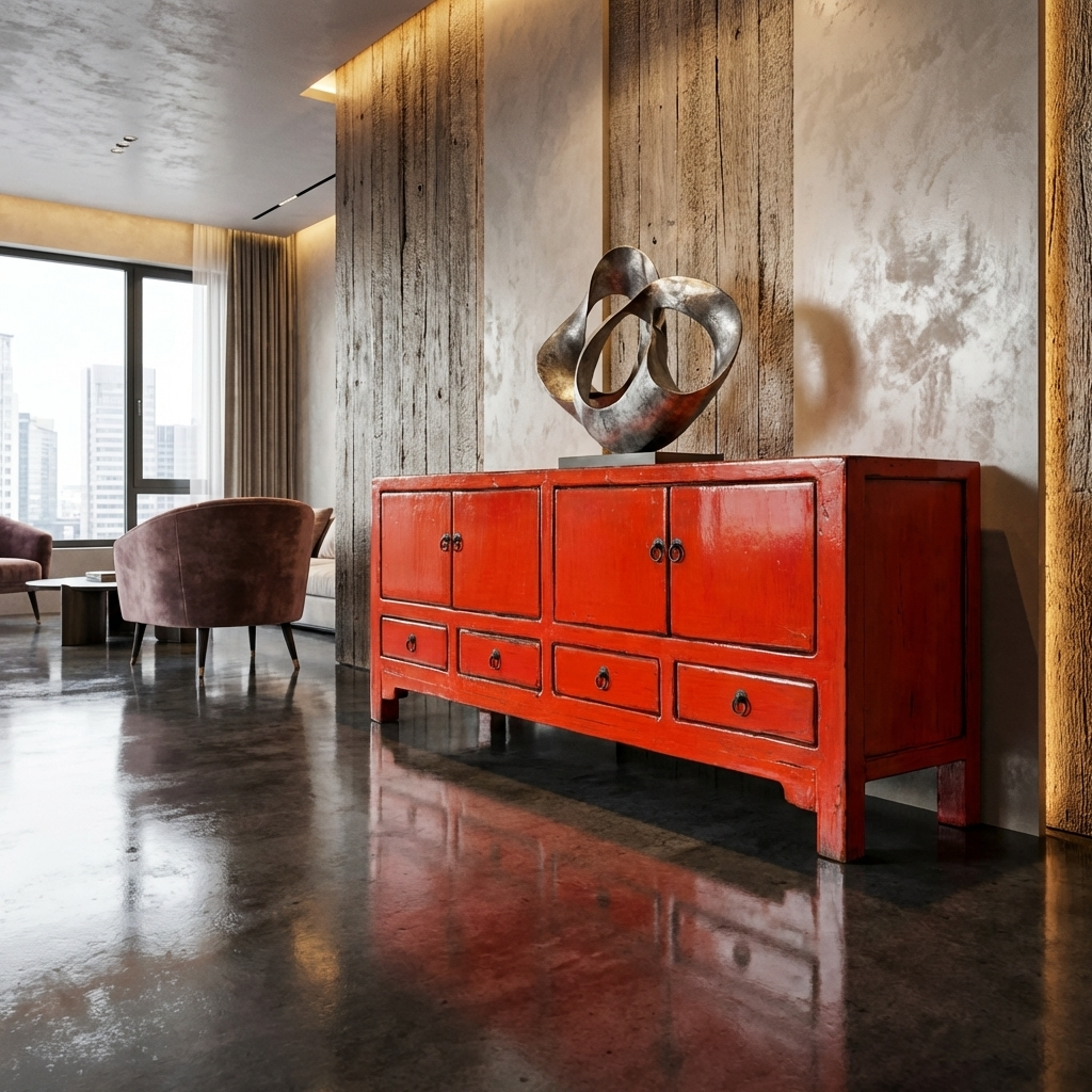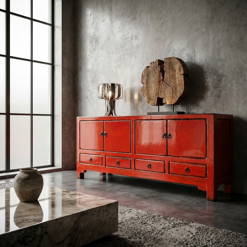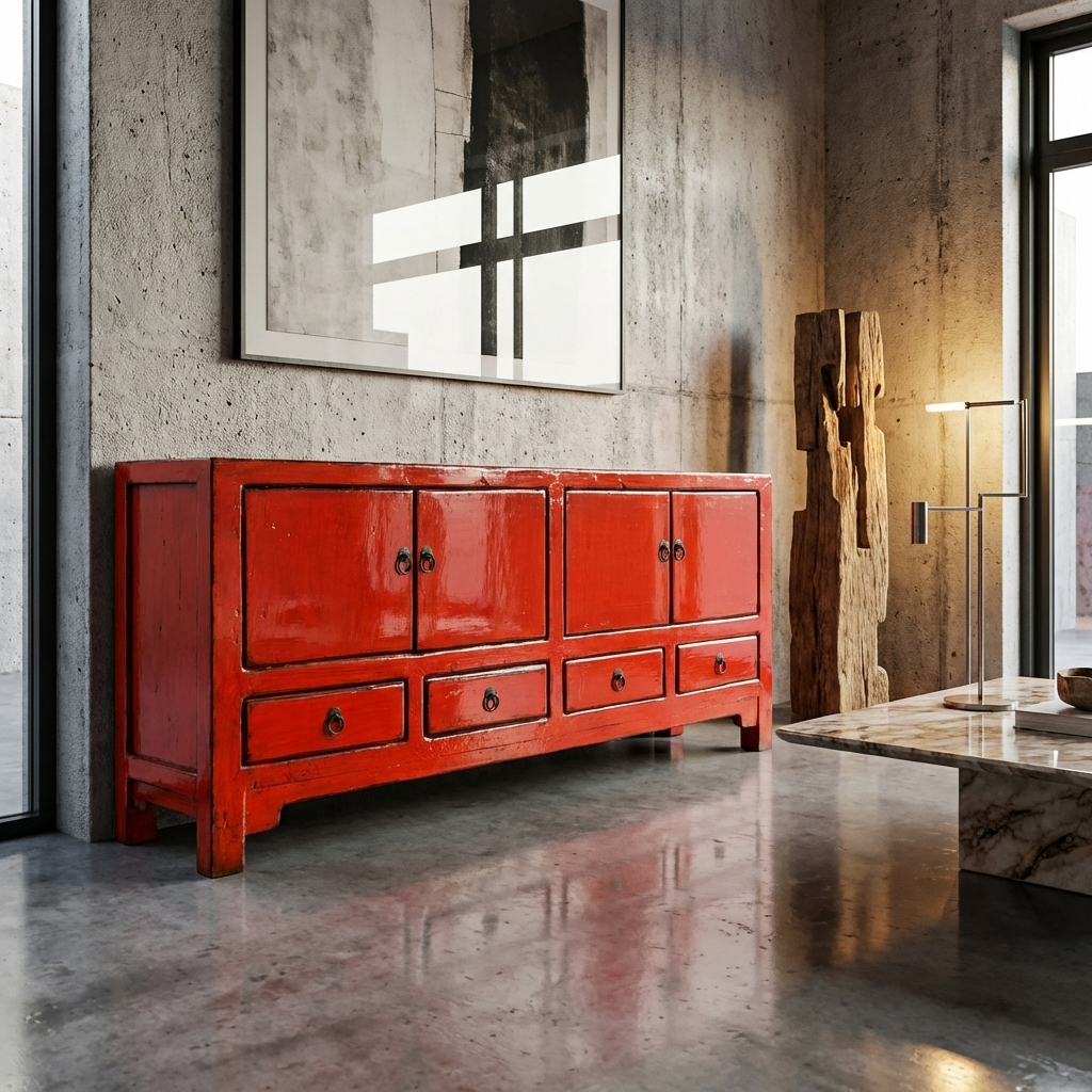 Antique Chinese TV Cabinet Red High Gloss W151xD39xH54cm