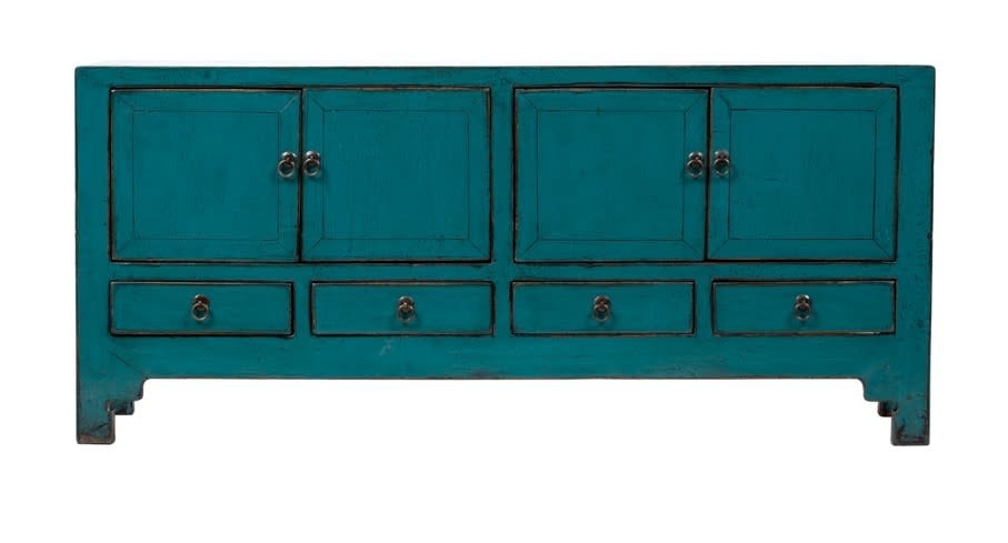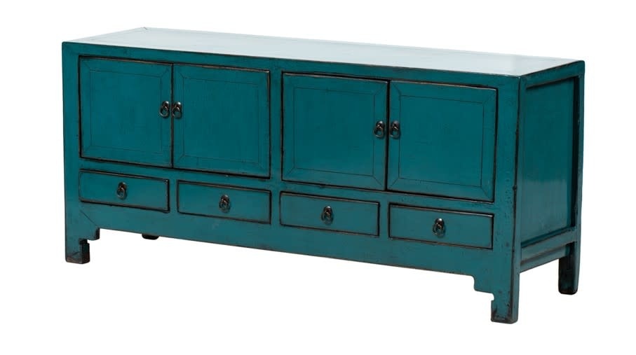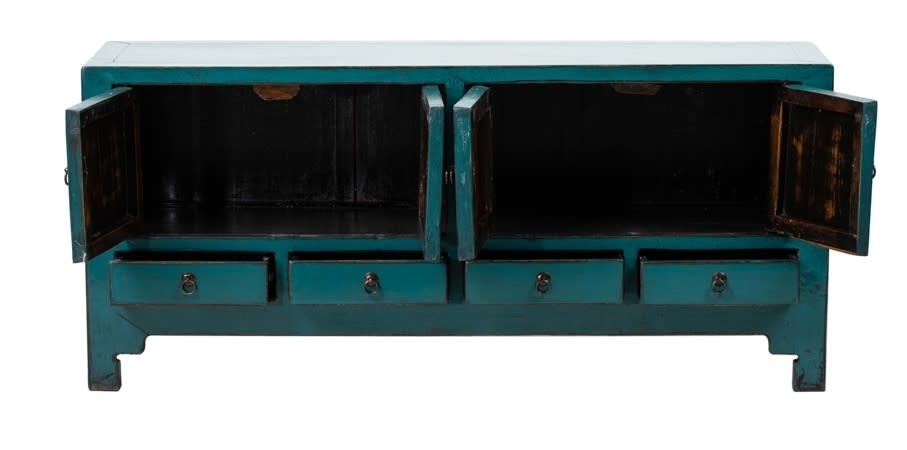 Antique Chinese TV Cabinet Teal High Gloss W136xD40xH61cm