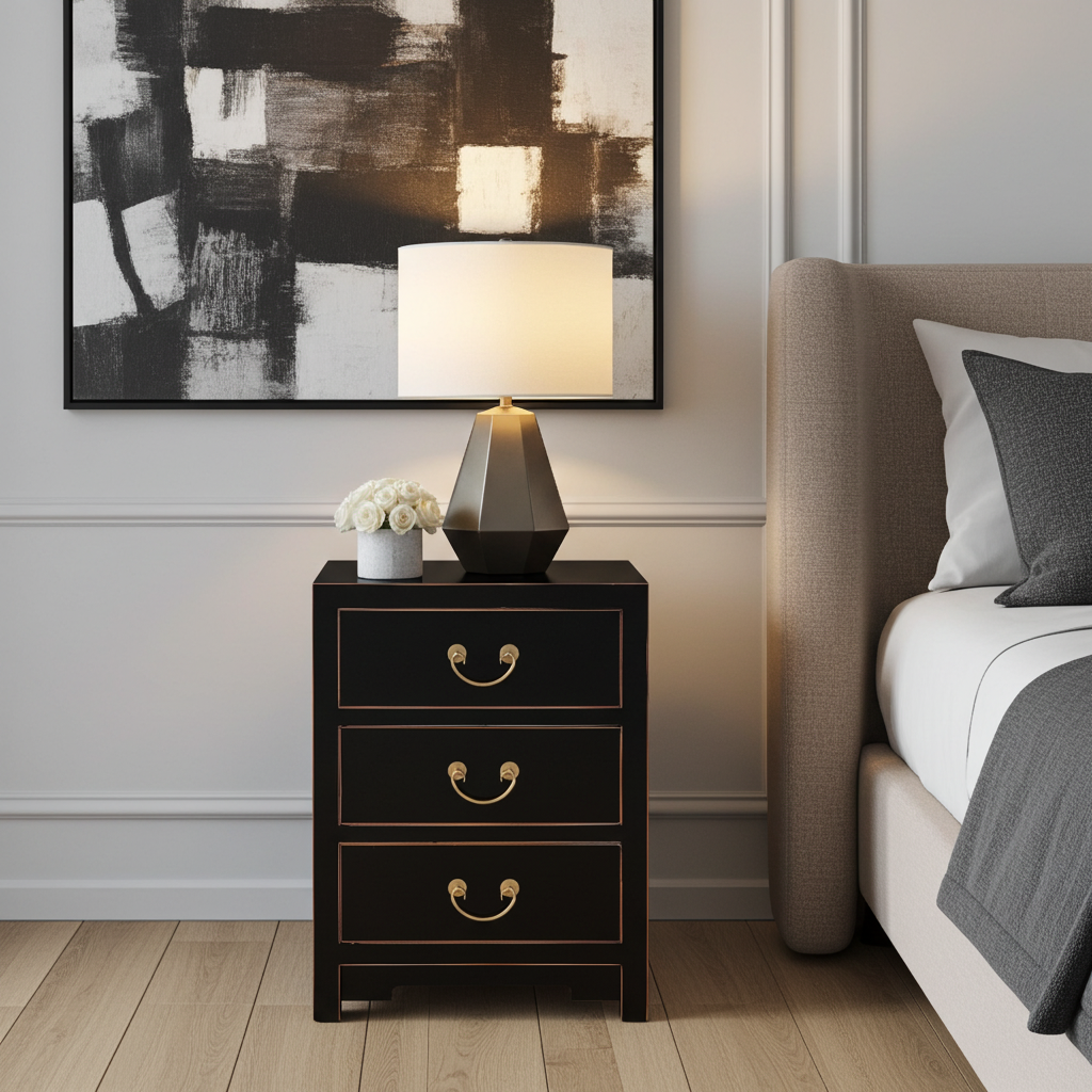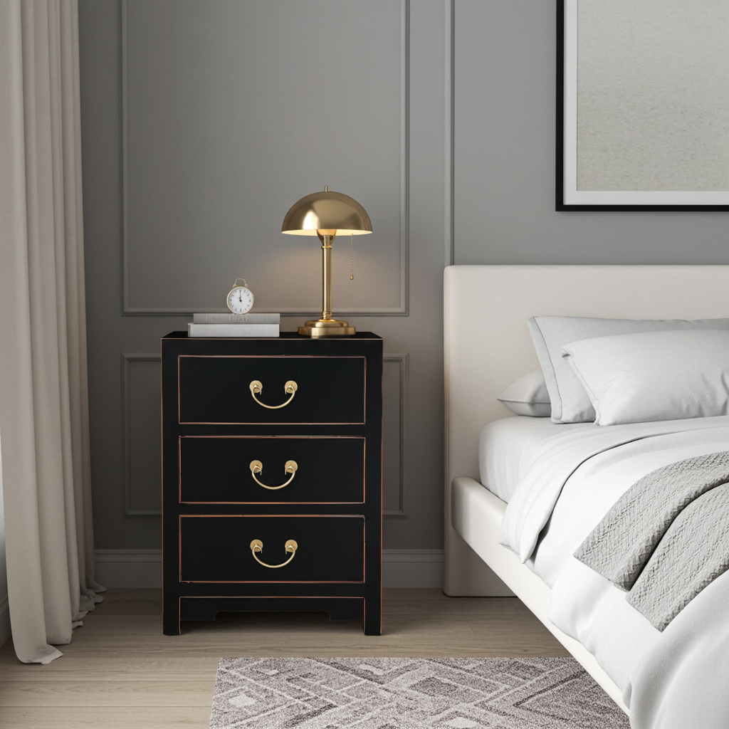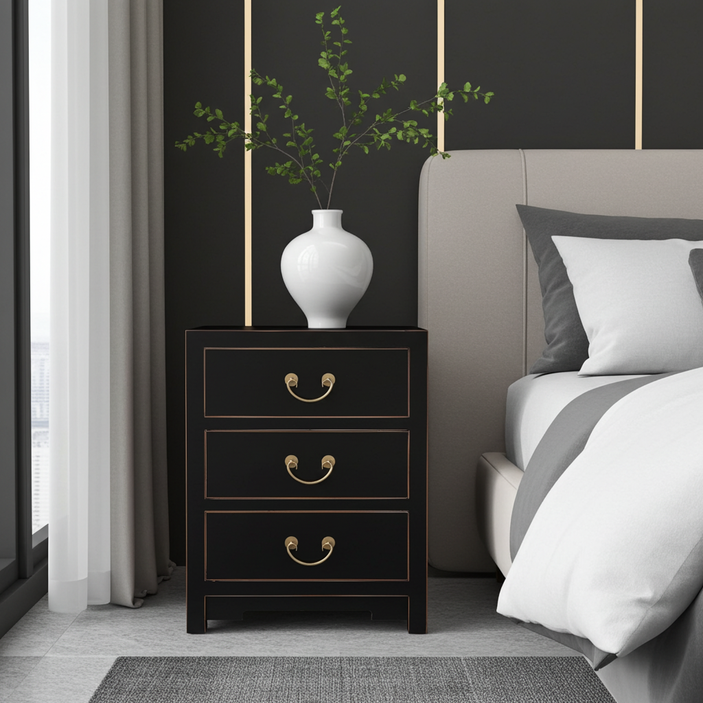 This Oriental bedside table is perfect as an Asian side table or as a charming small Chinese cabinet. This Asian accent table is a space-saving addition to any room. The versatility of this Chinese end table allows it to effortlessly complement various interior styles, offering endless possibilities for creative and elegant styling.