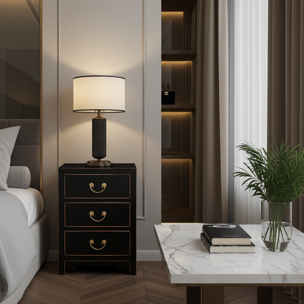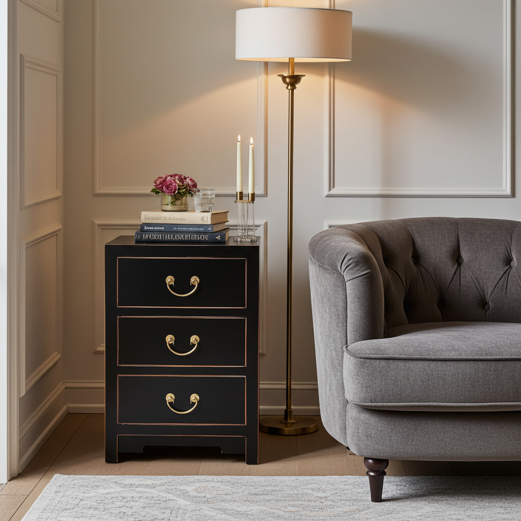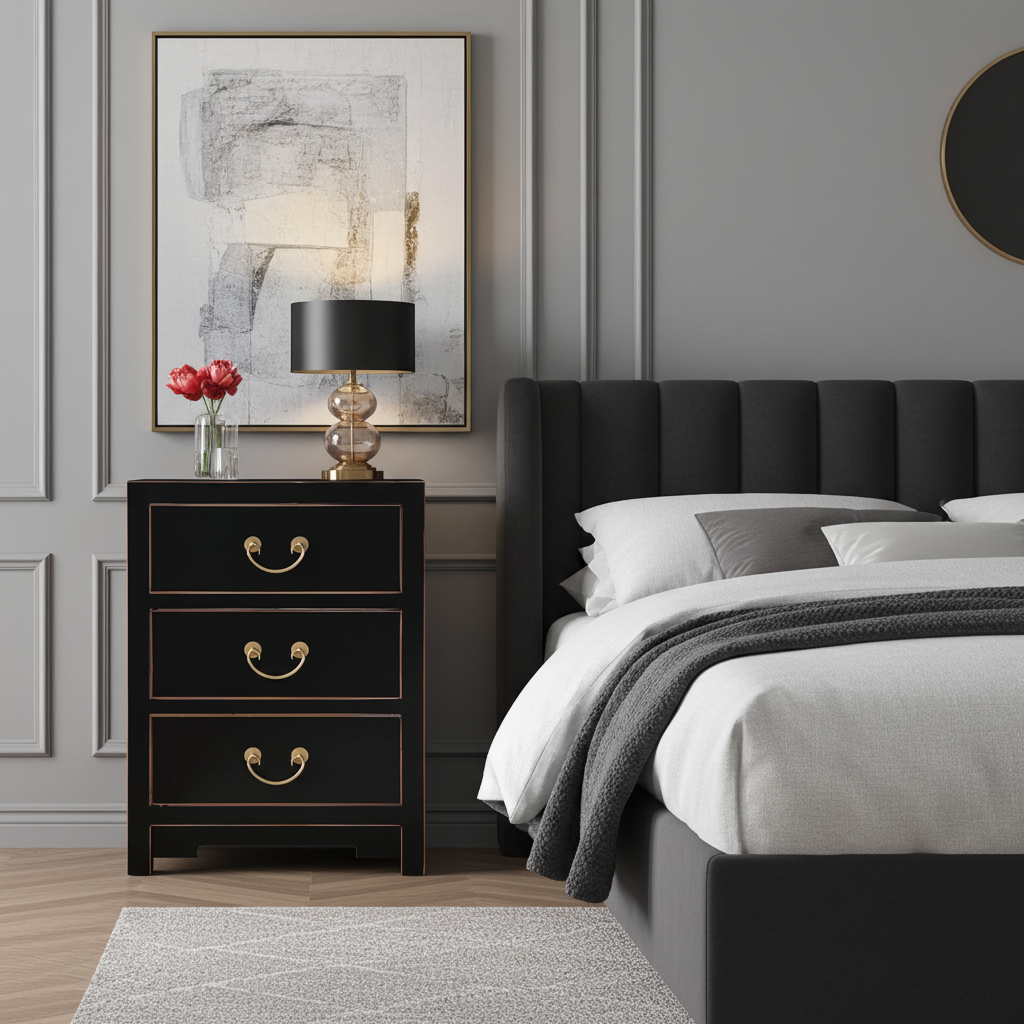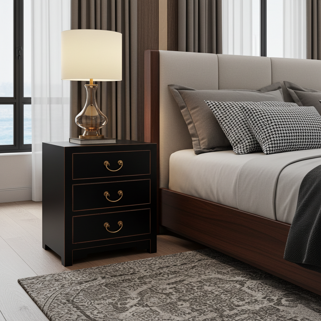 This Oriental bedside table is perfect as an Asian side table or as a charming small Chinese cabinet. This Asian accent table is a space-saving addition to any room. The versatility of this Chinese end table allows it to effortlessly complement various interior styles, offering endless possibilities for creative and elegant styling.