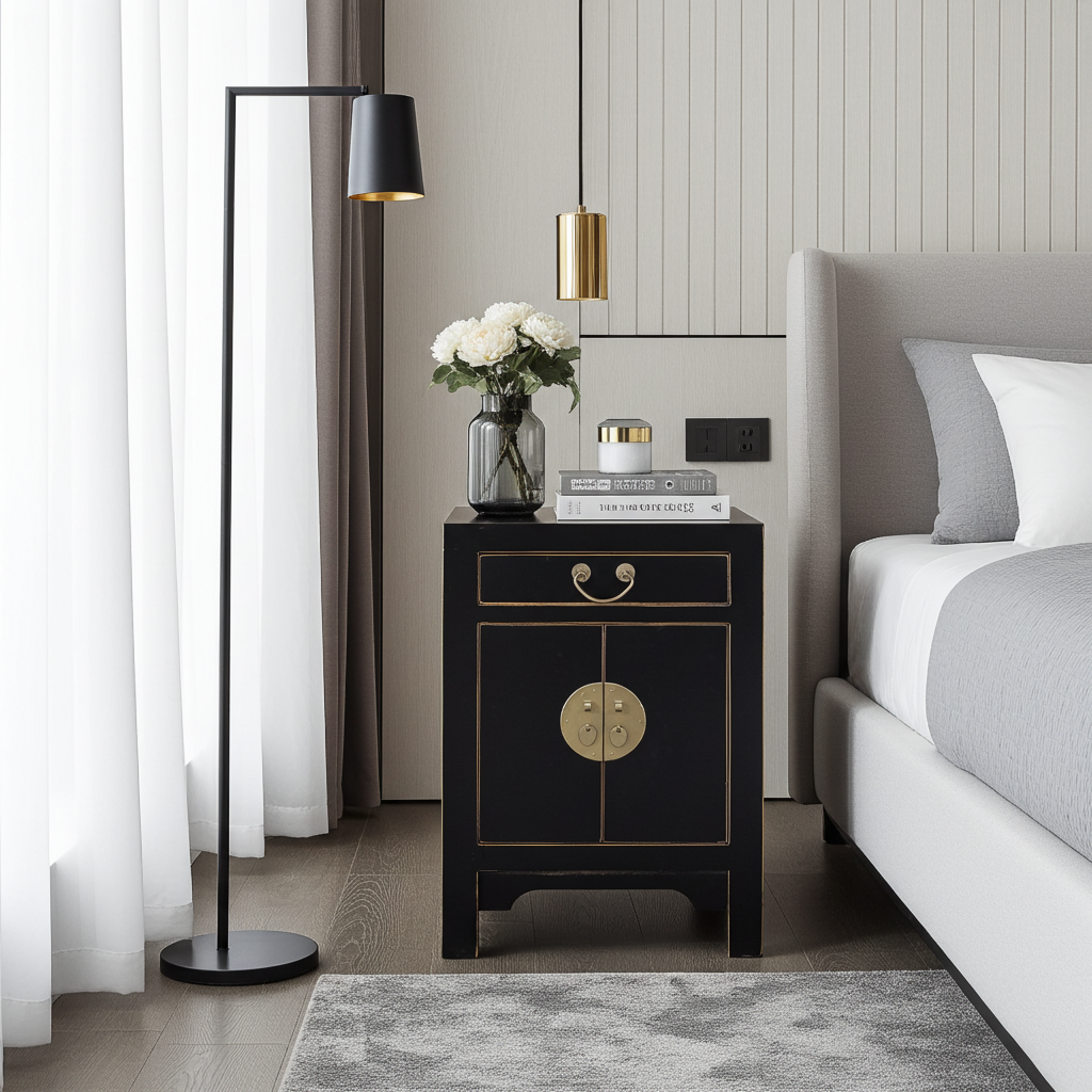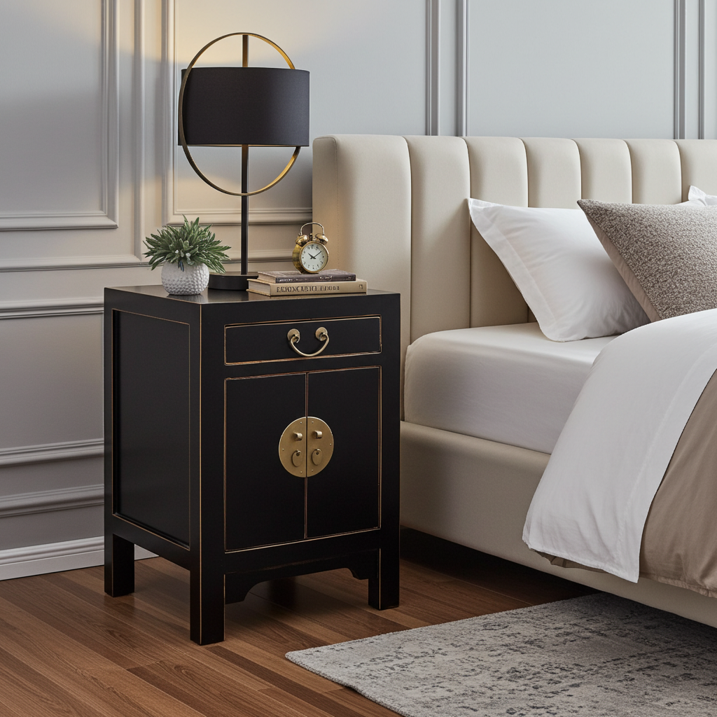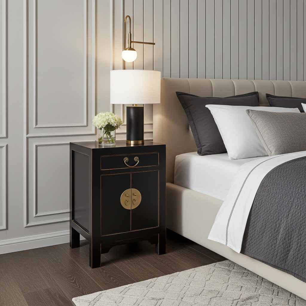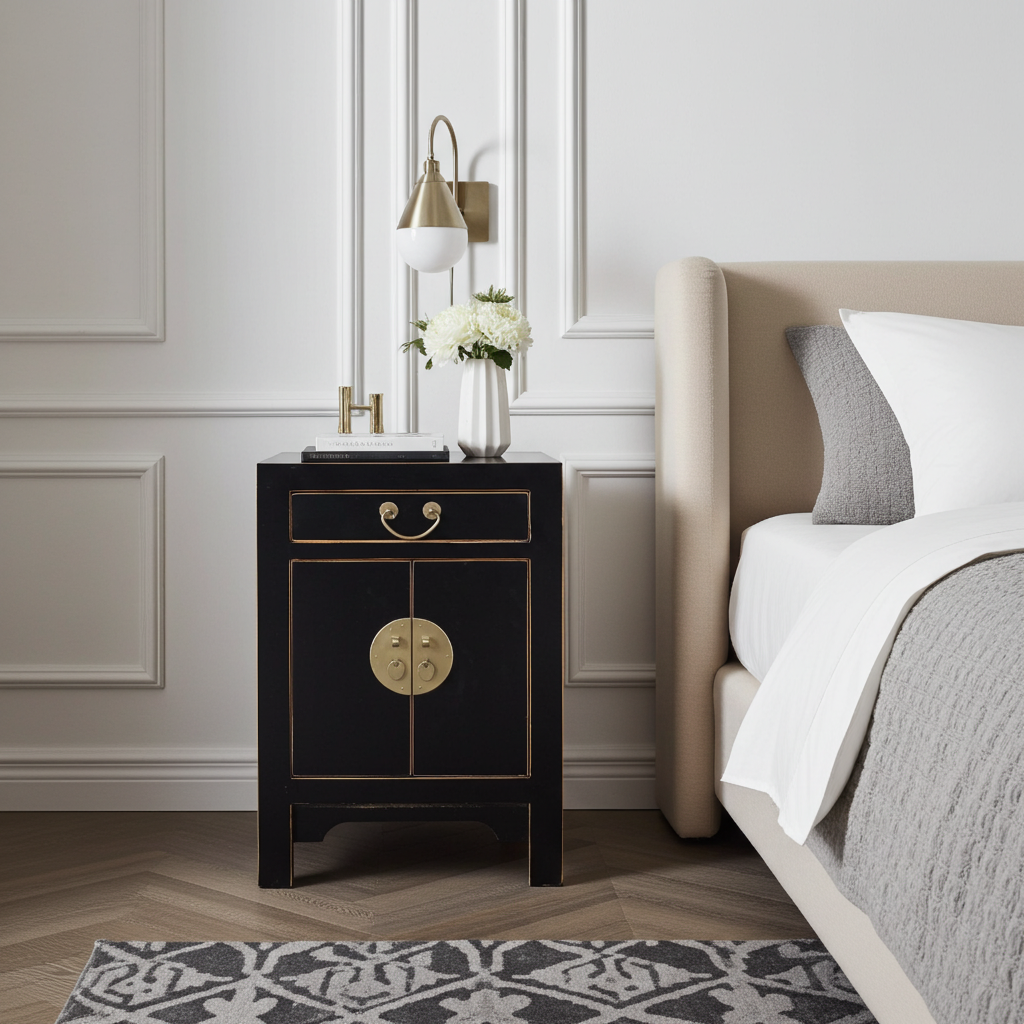 Chinese Bedside Table Onyx Black - Orientique Collection L42xW35xH60cm