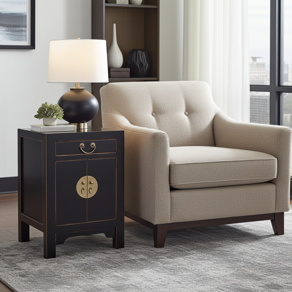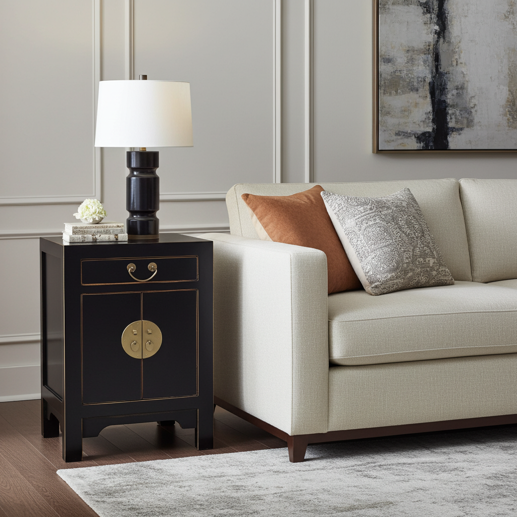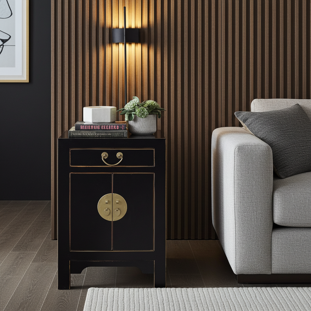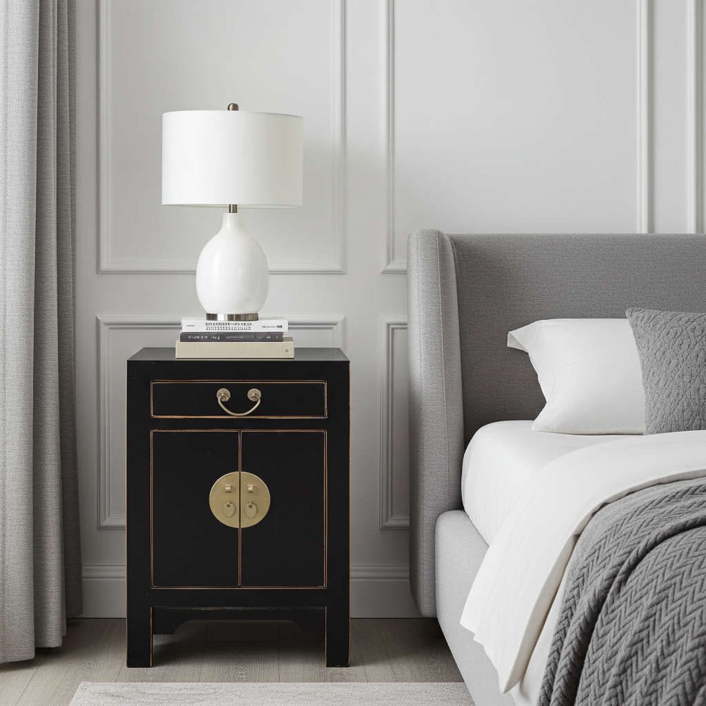 Chinese Bedside Table Onyx Black - Orientique Collection L42xW35xH60cm