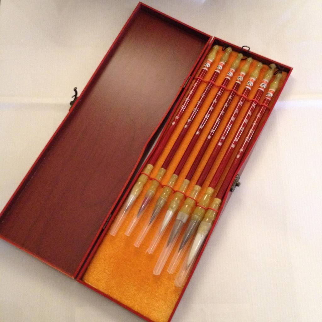 Fine Asianliving Chinese Calligraphy Brushes Set/7 Luxurious Wooden Giftbox