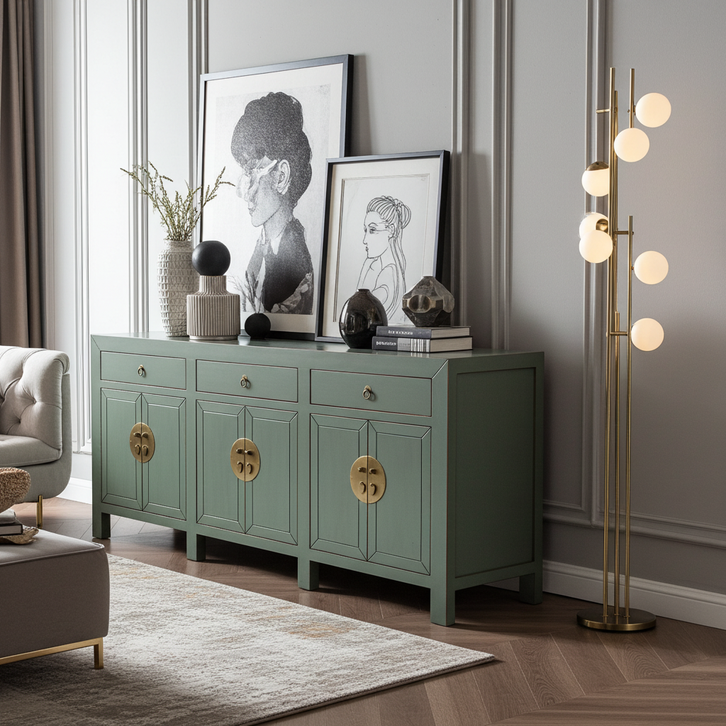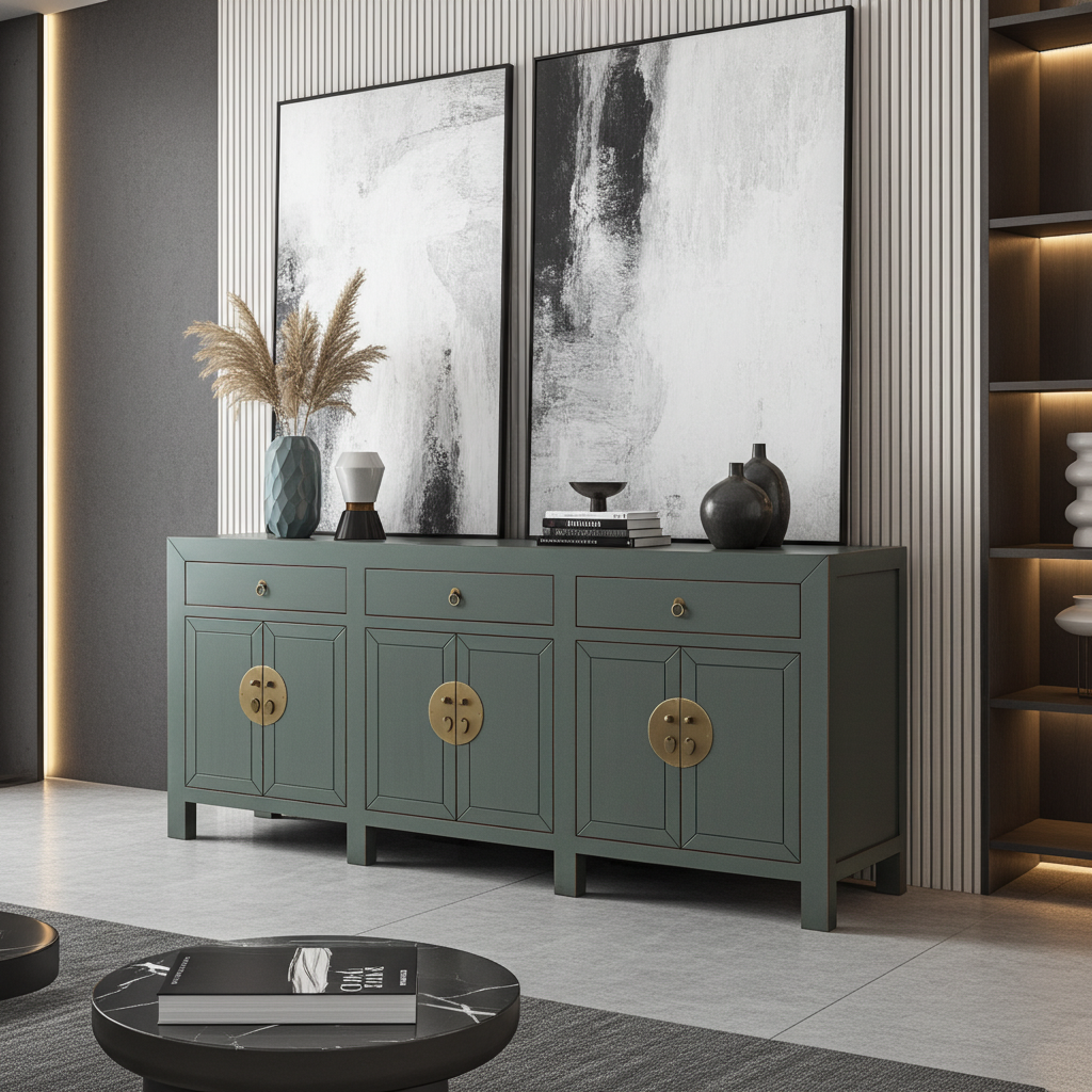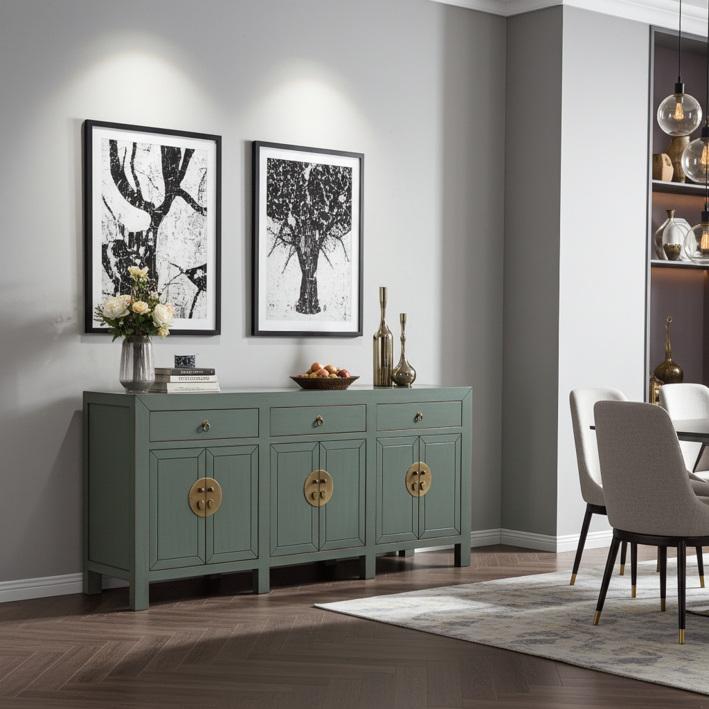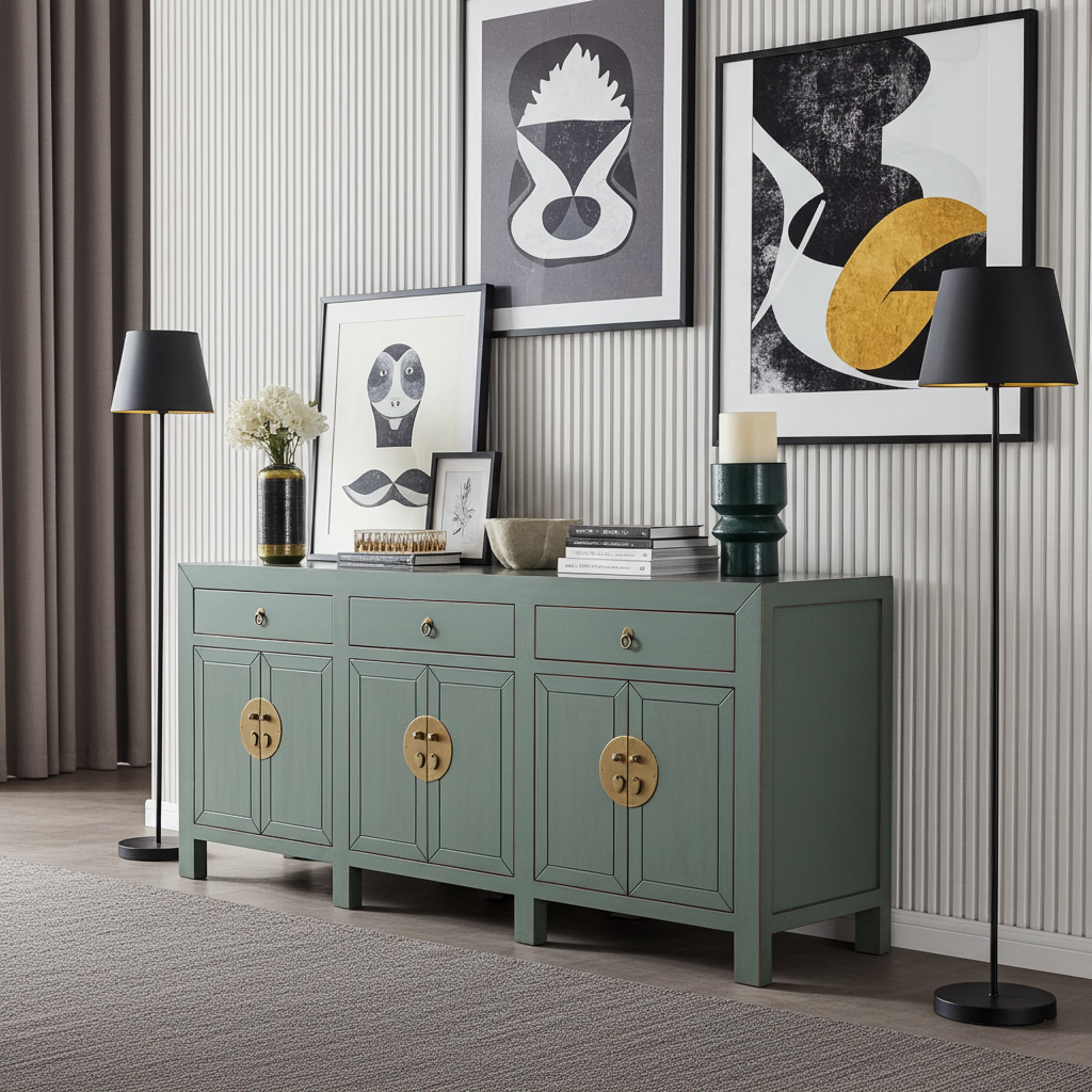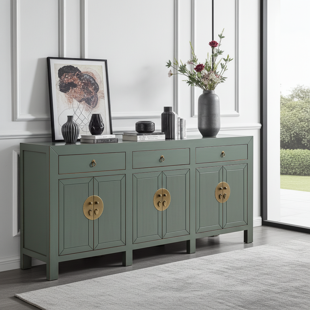 Chinese Sideboard Olive Grey - Orientique Collection W190xD40xH85cm