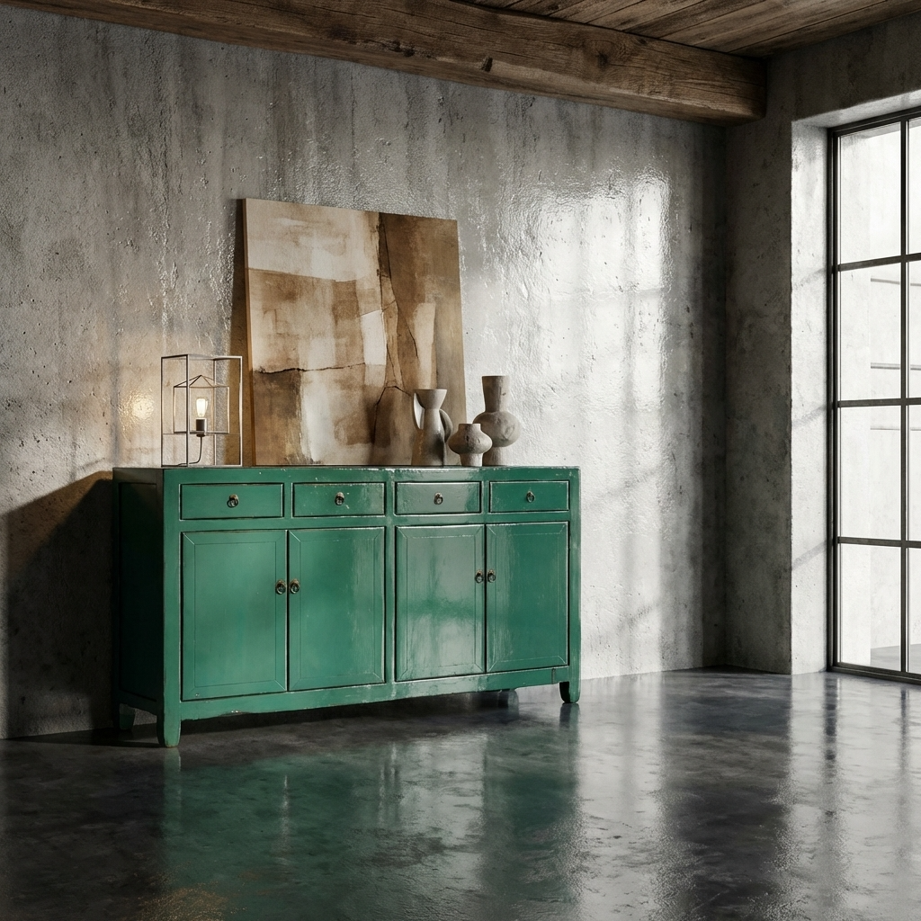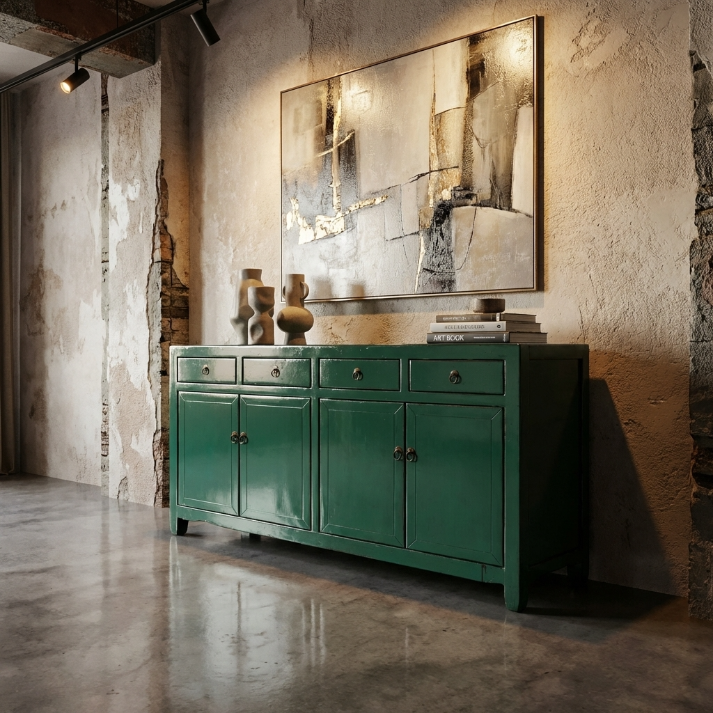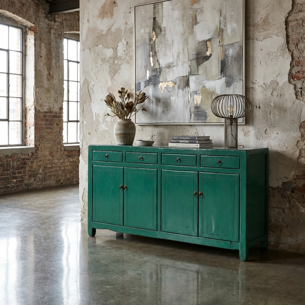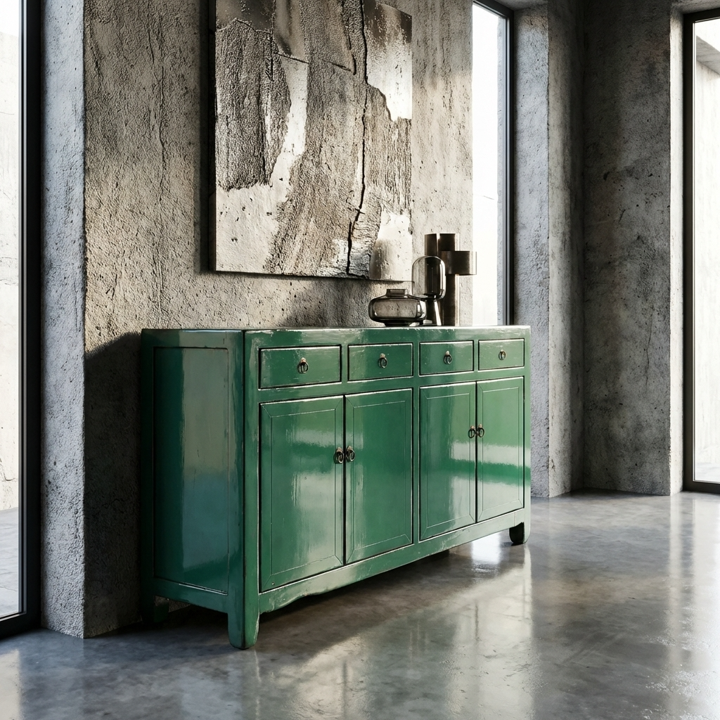 Aparador Chino Antiguo Verde Agua Alto Brillo A154xP39xAlt89cm