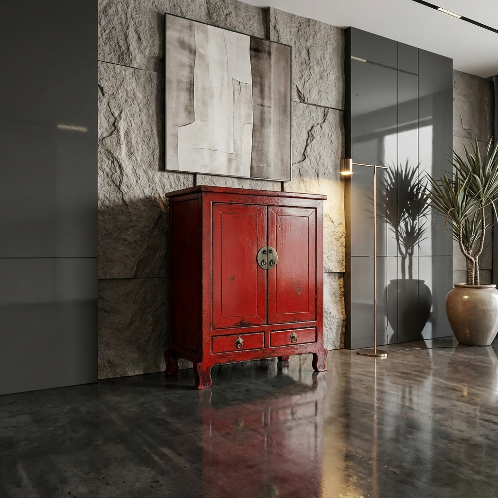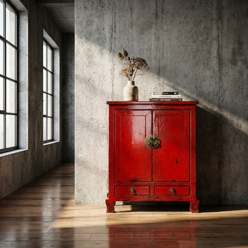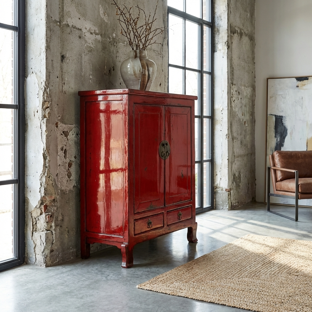 Armario Chino Antiguo Rojo Alto Brillo An84xP43xAlt114cm