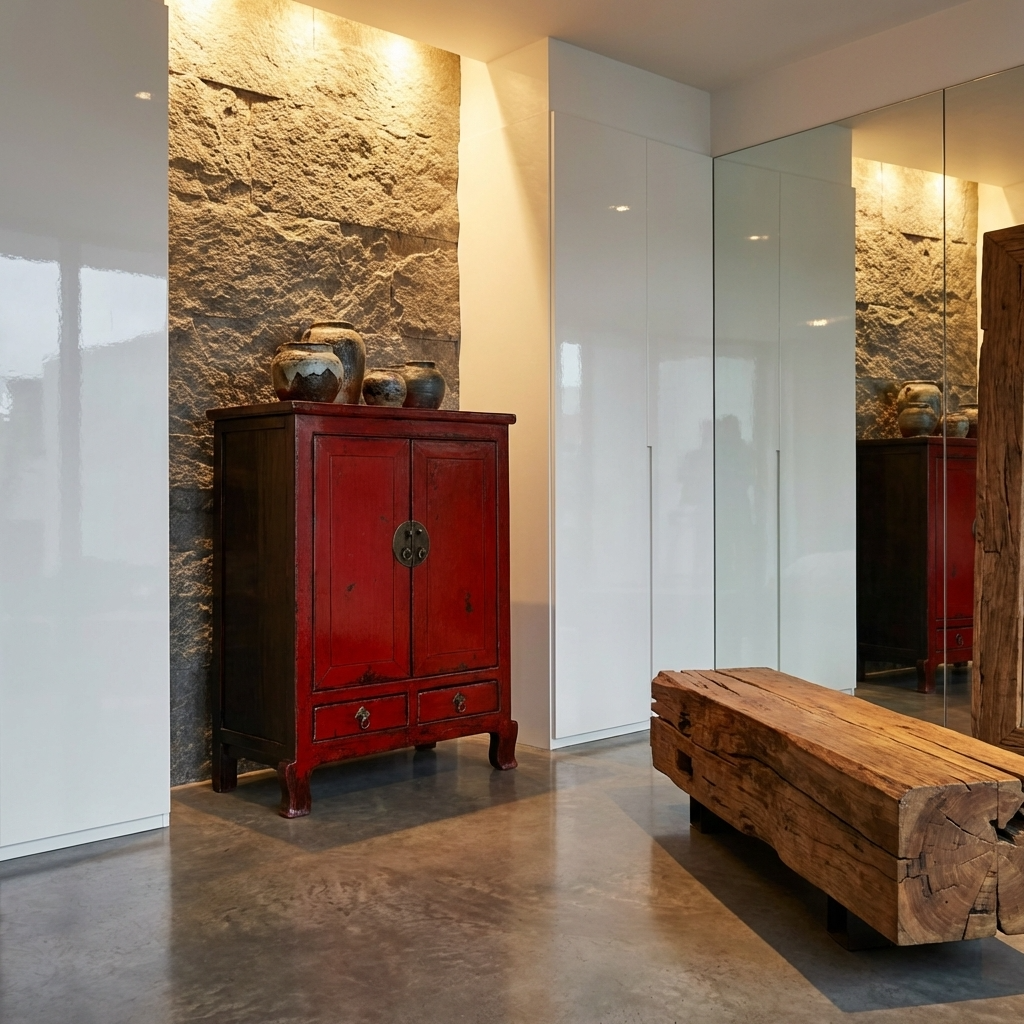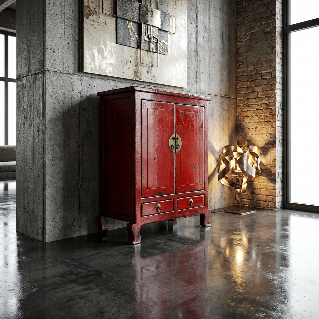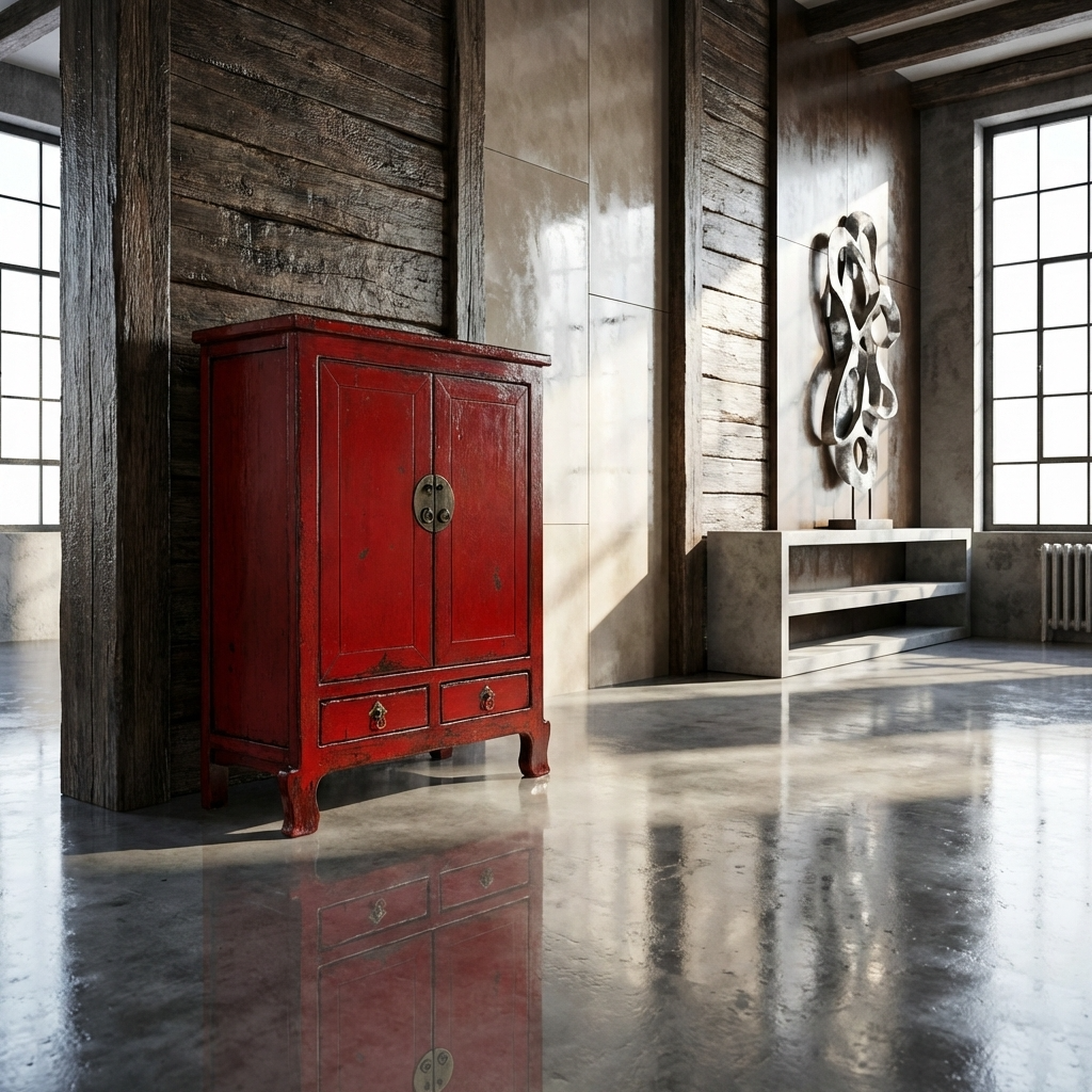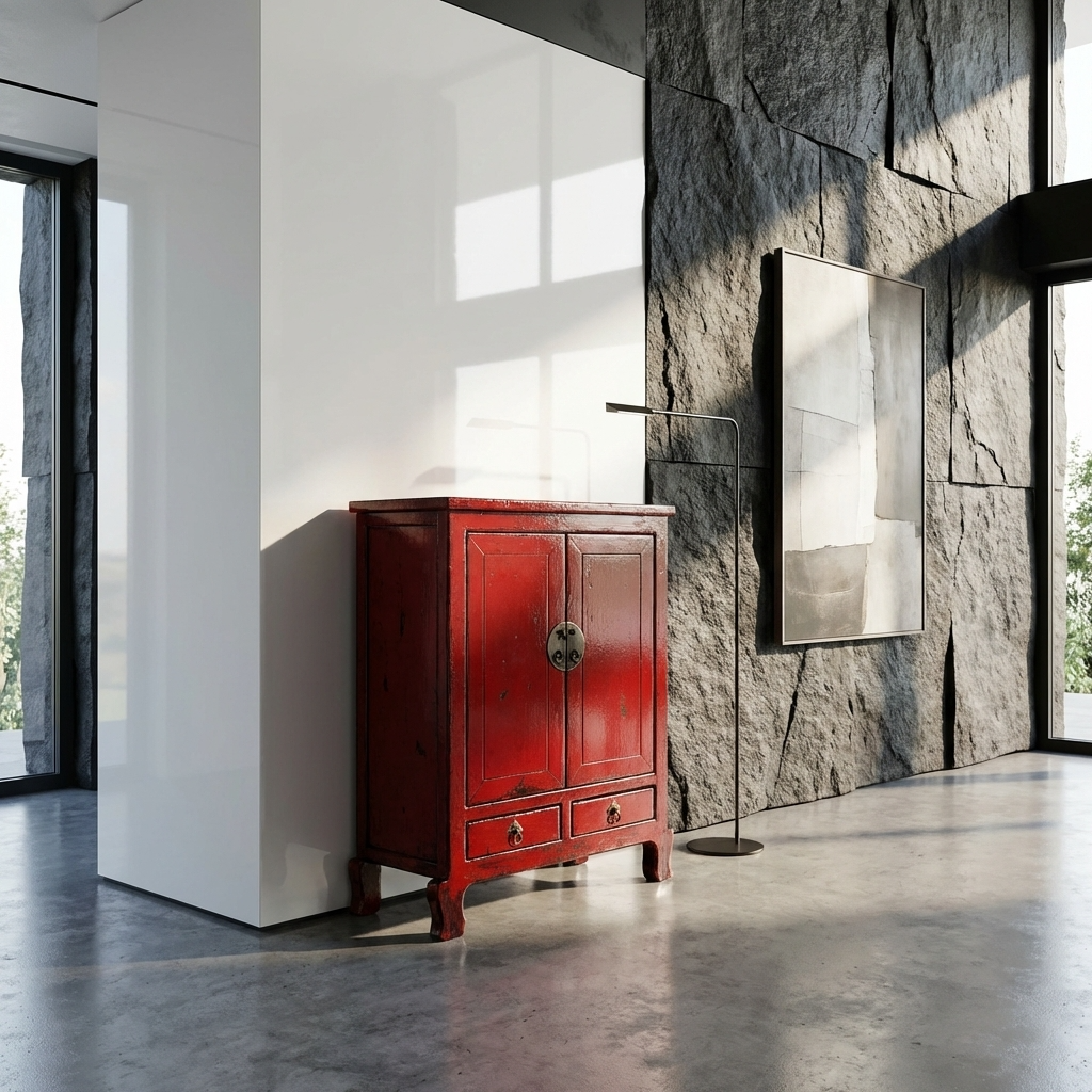 Armario Chino Antiguo Rojo Alto Brillo An84xP43xAlt114cm