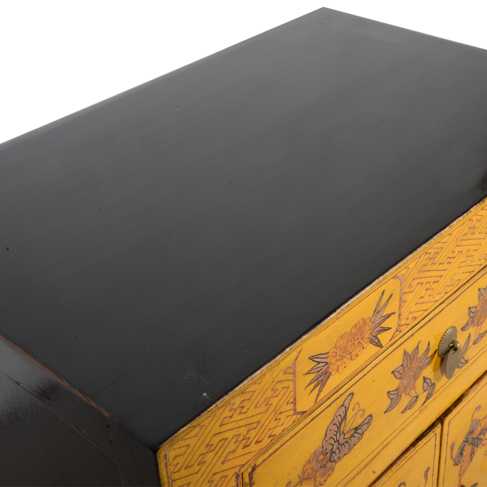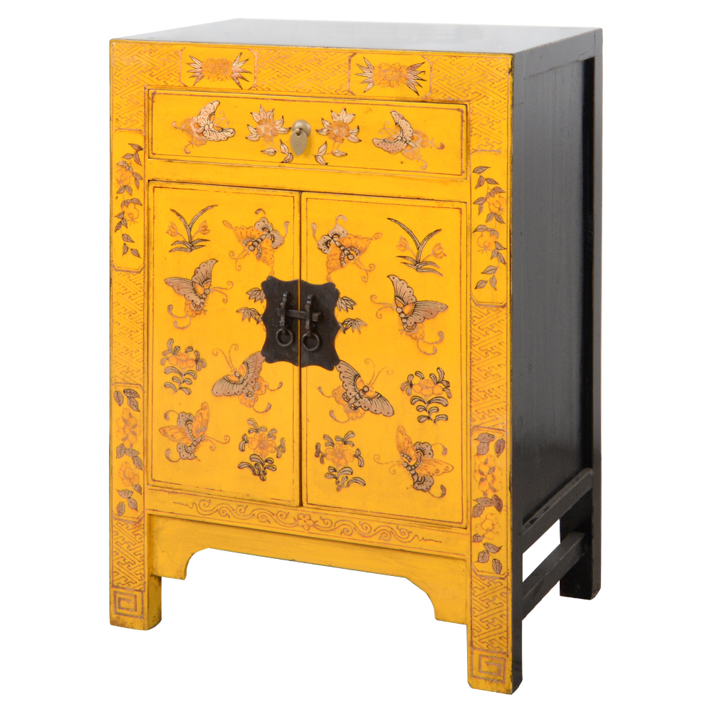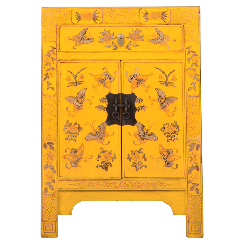 Armoire Chinoise Jaune Papillons Peints Main L58xP37xH85cm
