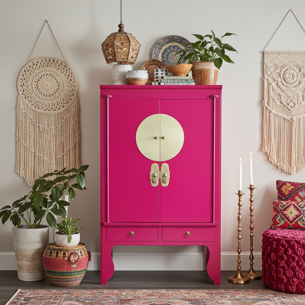 Armoire de Mariage Chinoise Fuchsia Royale - Orientique Collection L100xP55xH175cm