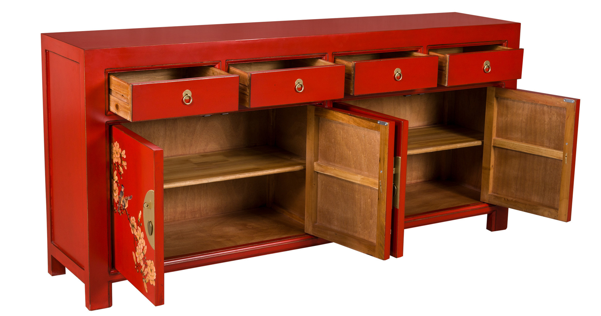 Buffet Chinois Lucky Rouge Peint à la Main - Orientique Collection L180xP40xH85cm