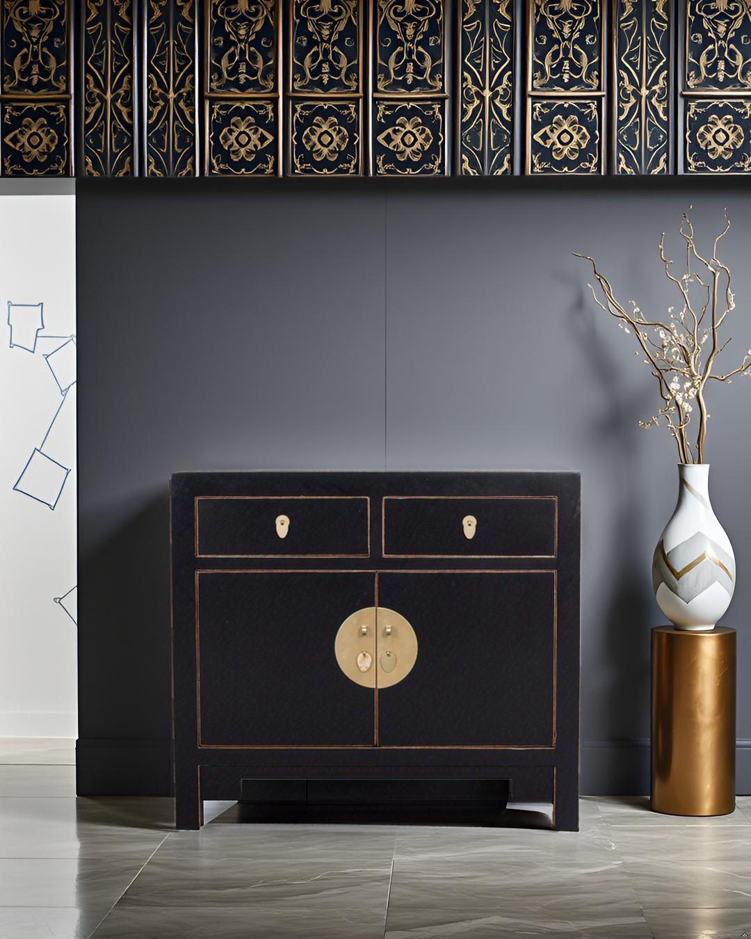 Armadio Cinese Onice Nero - Orientique Collezione L90xP40xA80cm