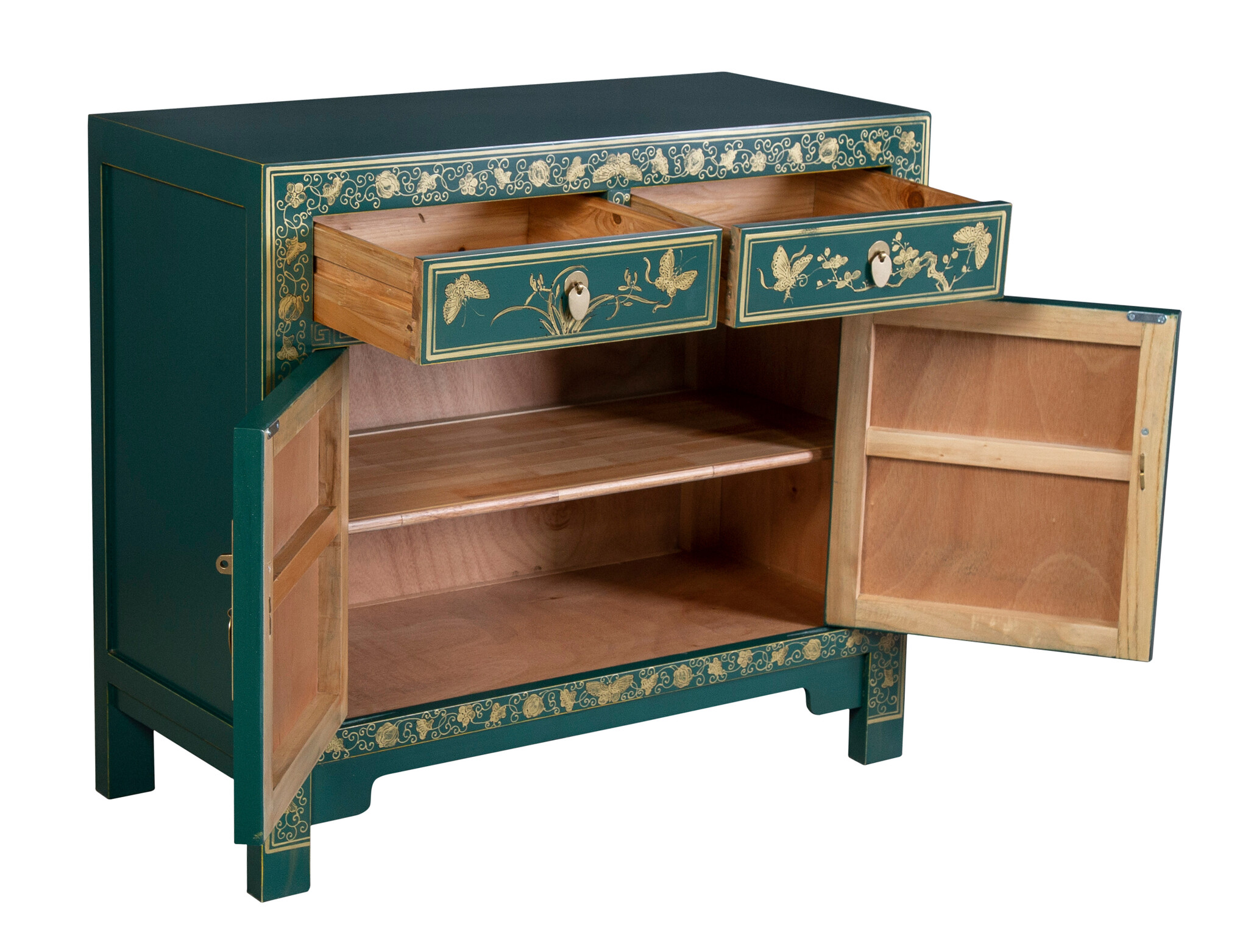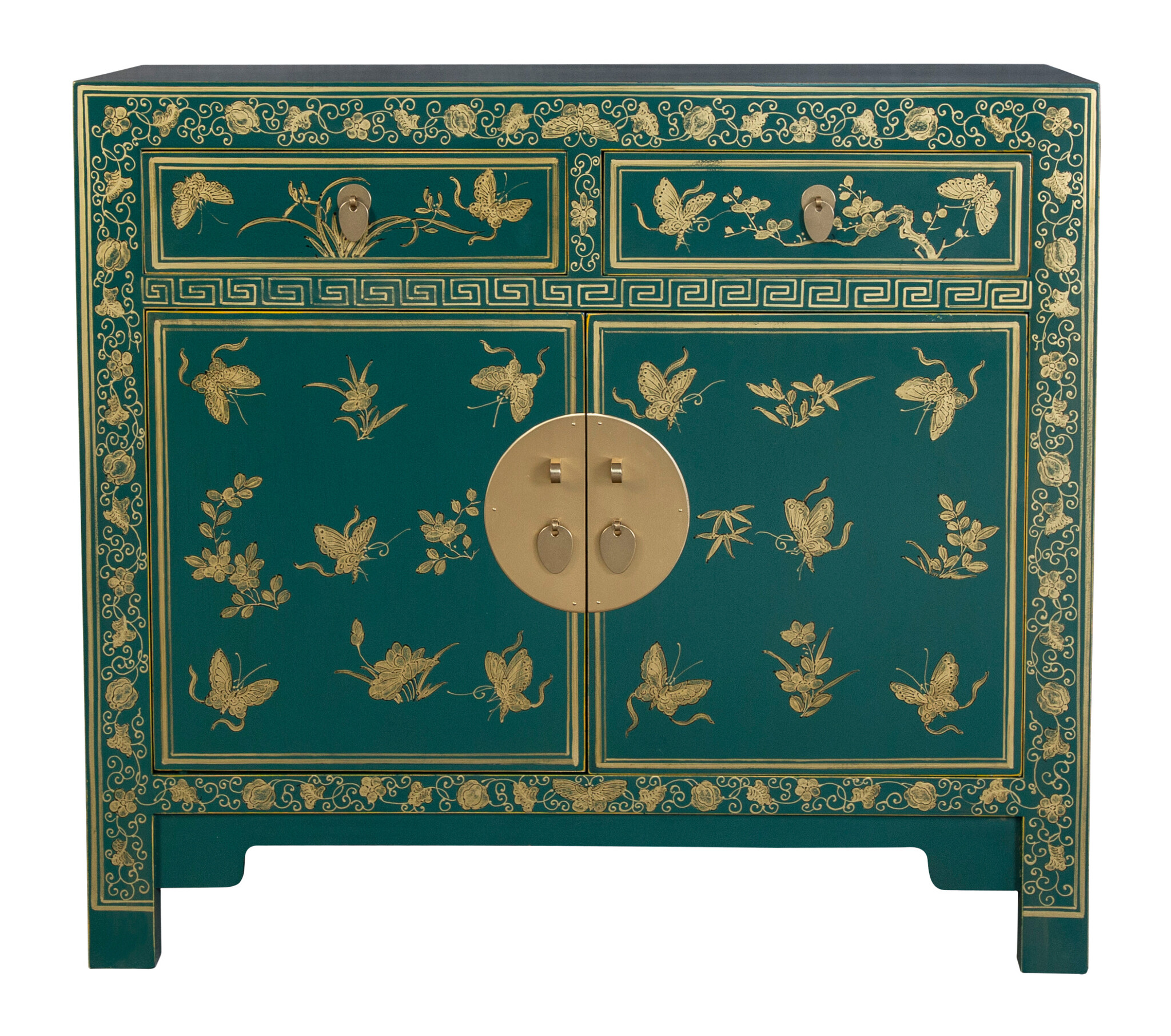 Armadio Cinese Verde Acqua Farfalle Dipinto a Mano - Orientique Collezione L90xP40xA80cm